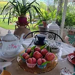 The Poggio Cannara serves a gluten-free breakfast featuring fresh pastries, fresh fruits, and pancakes.